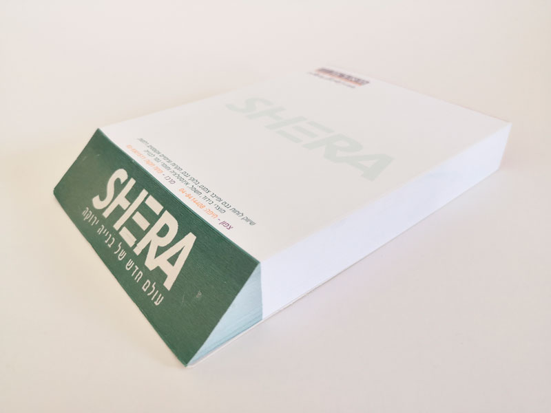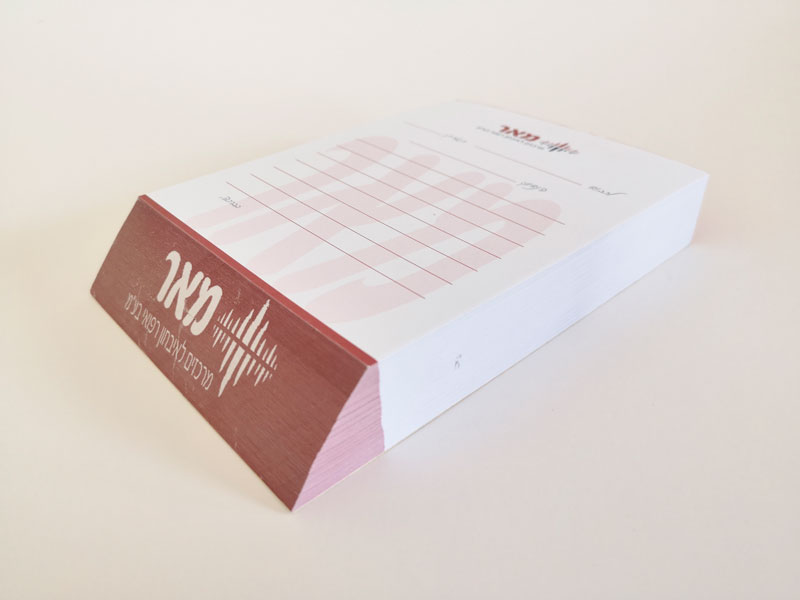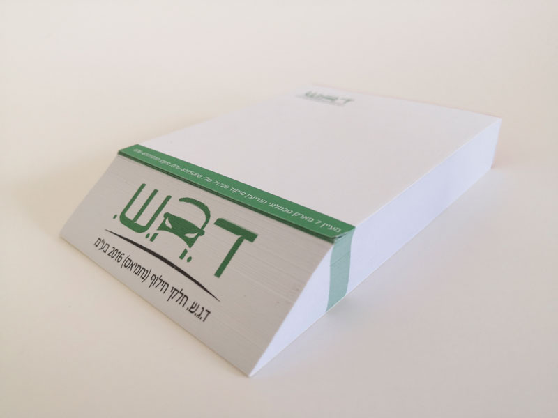 דפי תזכיר (memoׁׂׂ) מודפסים וחתוכים בצורה משופעת